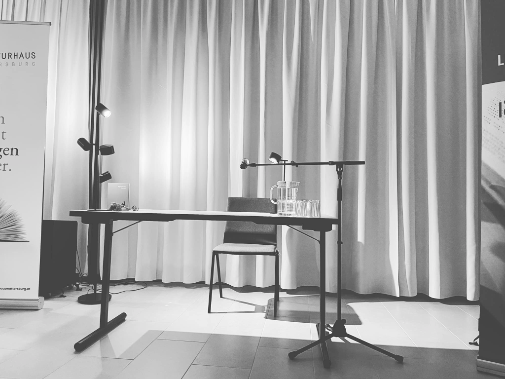 Gestern habe ich, neben drei anderen Autor:innen, im Literaturhaus Mattersburg, das sich im Kulturzentrum Mattersburg schön eingerichtet hat, im Rahmen der Vorstellung des Buches Junge Literatur Burgenland 2022 aus dem Verlag edition lex liszt 12 einen Text aus meiner Feder lesen dürfen. Und ich hatte Federn. Ordentlich sogar. Die haben mir zwar keine Flügel verliehen, aber dafür für jede Menge Nervösität gesorgt. Lampenfieber eben.