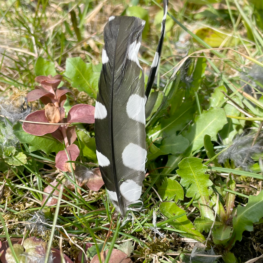 Und der findet ein paar wunderschöne Federn im Frühlingsgrase liegen.