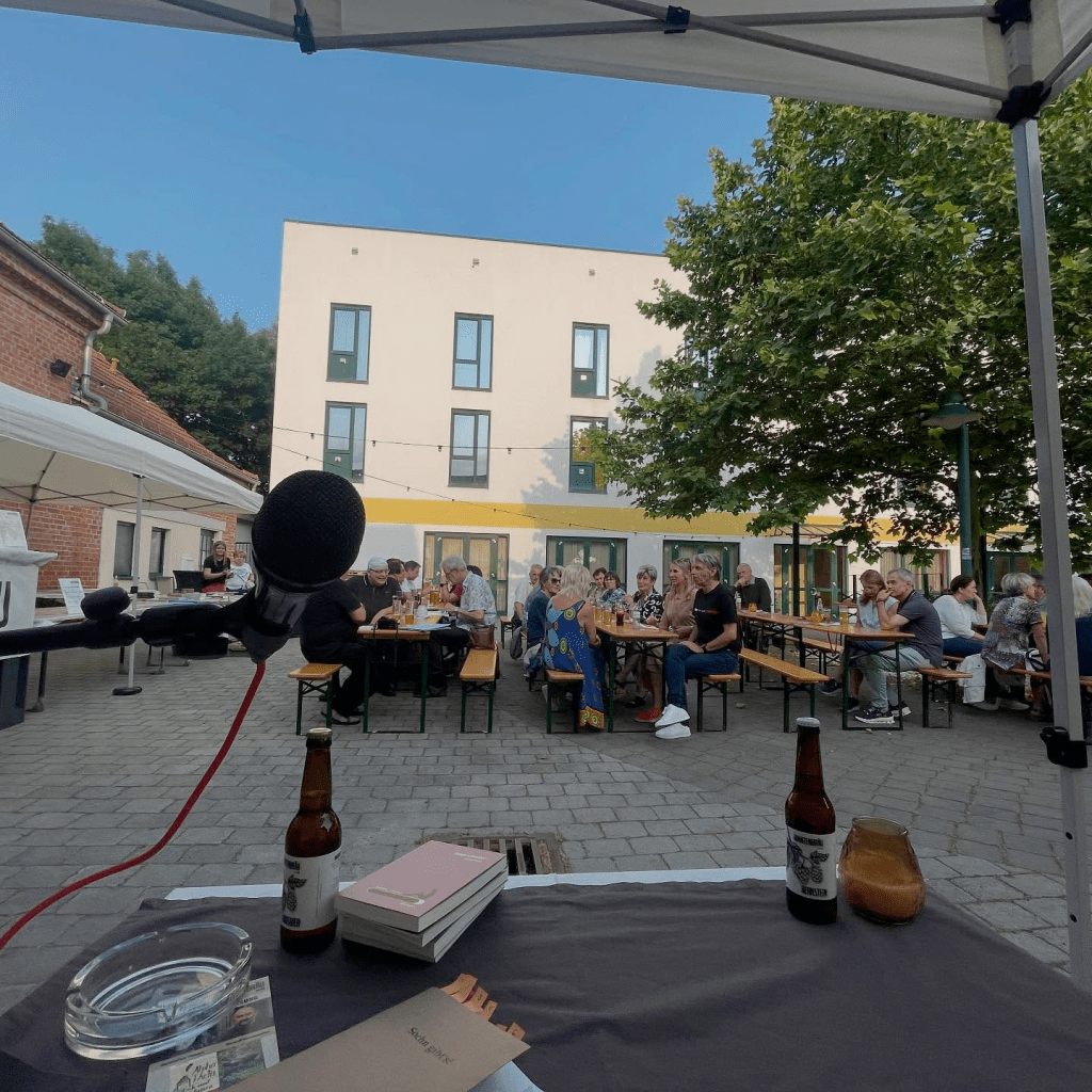 Es war nämlich so. Gestern durfte ich im Hianznbräu in Großpetersdorf auf Einladung des Verlags lex liszt 21 gemeinsam mit Michael Hess eine Lesung halten. Der Innenhof war gut besucht, es gab auch frisch gezapftes Bier und das lieraturdurstige Publikum harrte den Geschehnissen. Als Tüpfelchen auf den i war dann auch noch Berti Unger mit dabei, der zwischendurch auf seiner Klampfn Austropop vom Feinsten spielen sollte.
